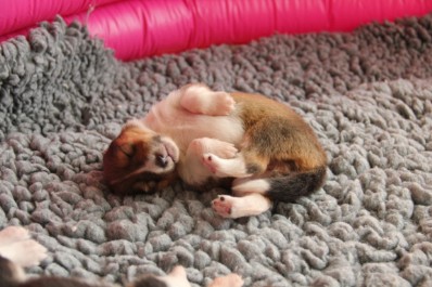 Und dann geschah es! Am Ende der Woche haben wir die Augen geöffnet! Donnerwetter! Ist das interessant hier! Und vor Allem: Nun können wir Mama sehen! Wenn sie kommt, rennen wir um die Wette an die Milchbar...
